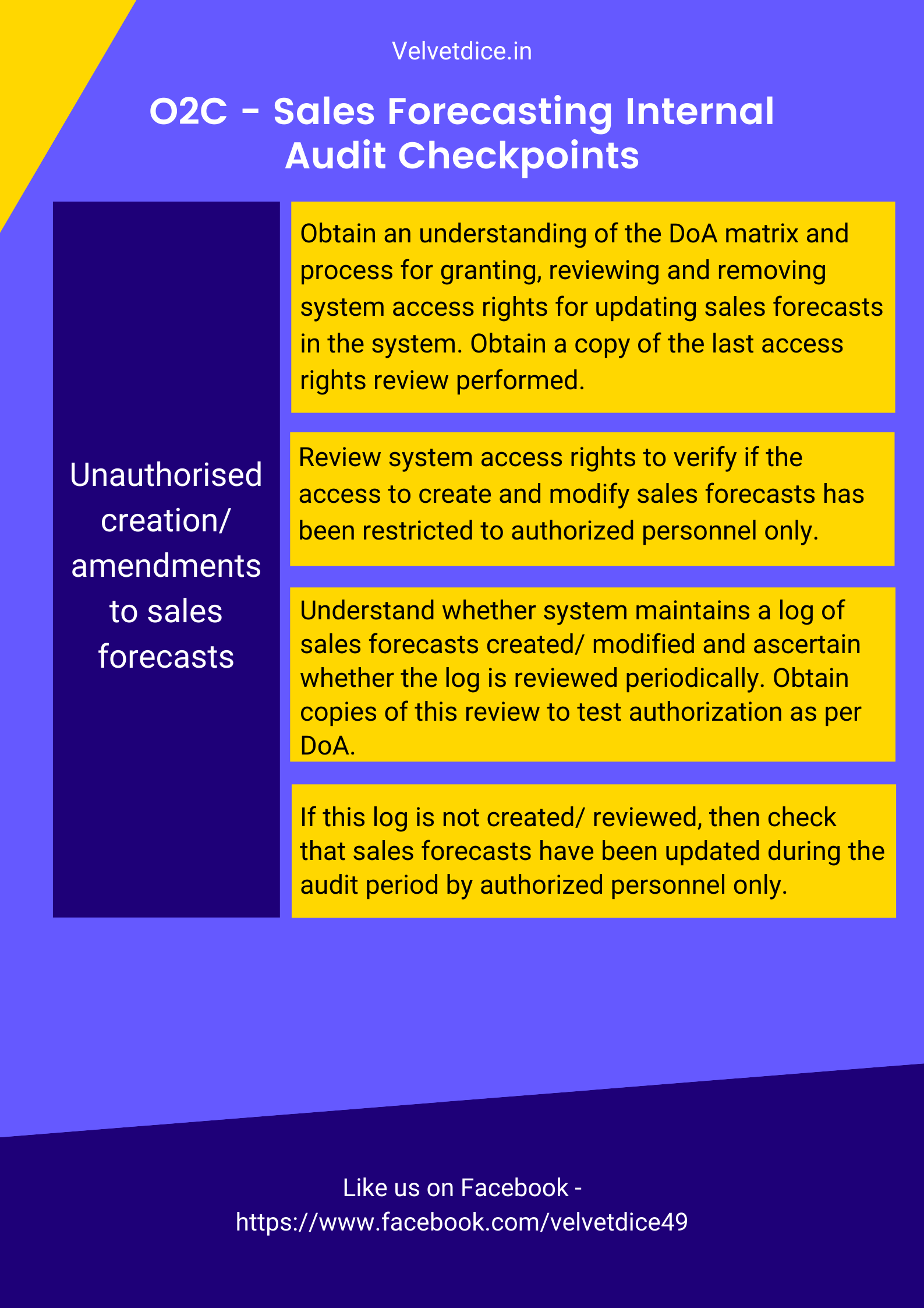 - Obtain an understanding of the DoA matrix and process for granting, reviewing and removing system access rights for updating sales forecasting parameters.